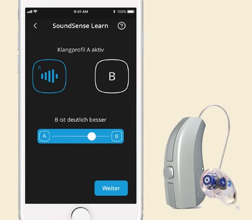 Maschinelles Lernen ist eine Form der künstlichen Intelligenz, bei der Systeme aus Daten lernen, Muster erkennen und eigenständig Entscheidungen treffen. Die SoundSense Learn Technologie lässt den Hörgeräteträger Klangprofile hören, die von einer App auf seinem Smartphone vorgeschlagen werden. Der Nutzer bekommt einfache Klangprofile über A/B-Vergleiche präsentiert, hört und vergleicht dann die Klangprofile und wählt seine Präferenz für A oder B. Die Auswahl des Nutzers wird dann in ein maschinelles Lernsystem, die Widex Cloud, zurückgespeist, wo der Prozess fortgesetzt. So werden Nutzern neue intelligente Klangprofile präsentiert. Die Funktion SoundSense Learn verbessert ständig die personalisierten Klangeinstellungen für verschiedene Hörumgebungen und steht MOMENT- und EVOKE-Trägern zur Verfügung – genau dann, wenn sie sie brauchen.
